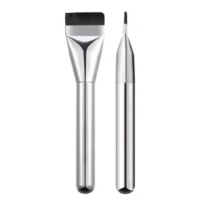 • براش کرم‌ پودر (Foundation Brush): معمولاً تخت یا بیضی ‌شکل با الیاف متراکم است. برای پخش کرم‌های مایع یا نیمه‌ سنگین طراحی شده و پوشش بدون رد ایجاد می ‌کند.