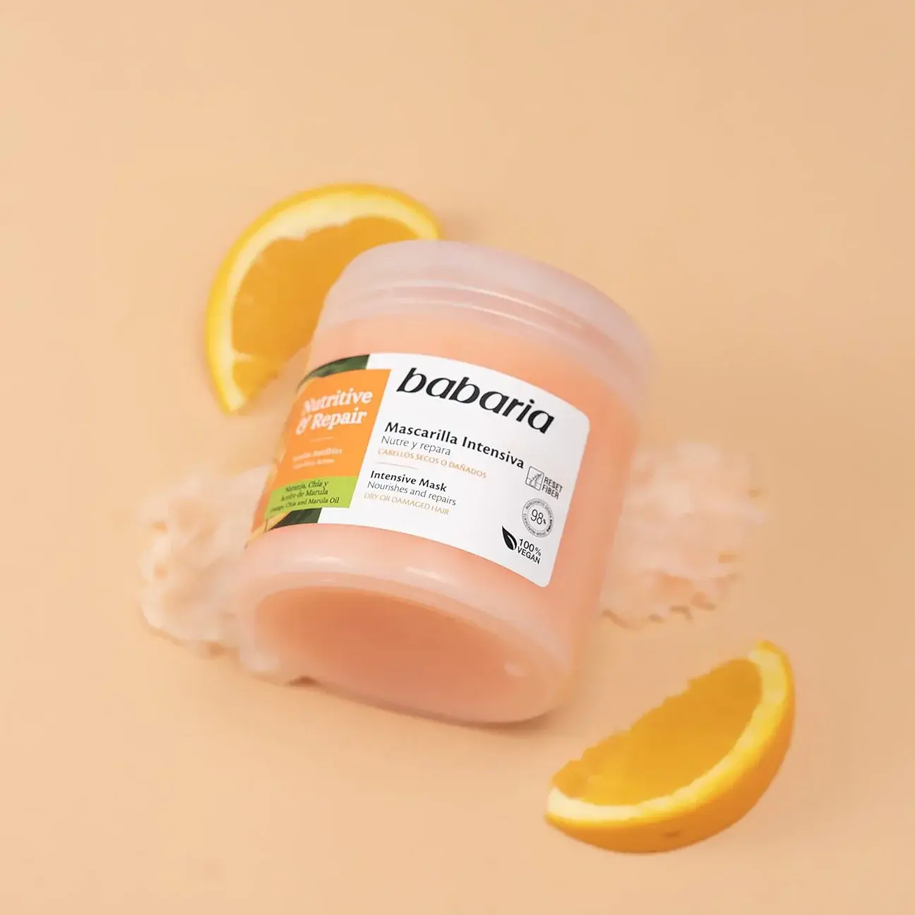 ماسک مو ترمیمکننده باباریا مدل Nutritive & Repair با ترکیب مؤثر روغن آرگان خالص و کراتین فعال، تارهای مو را از درون تغذیه میکند و لطافت و درخششی ابریشمی به آنها میبخشد.
