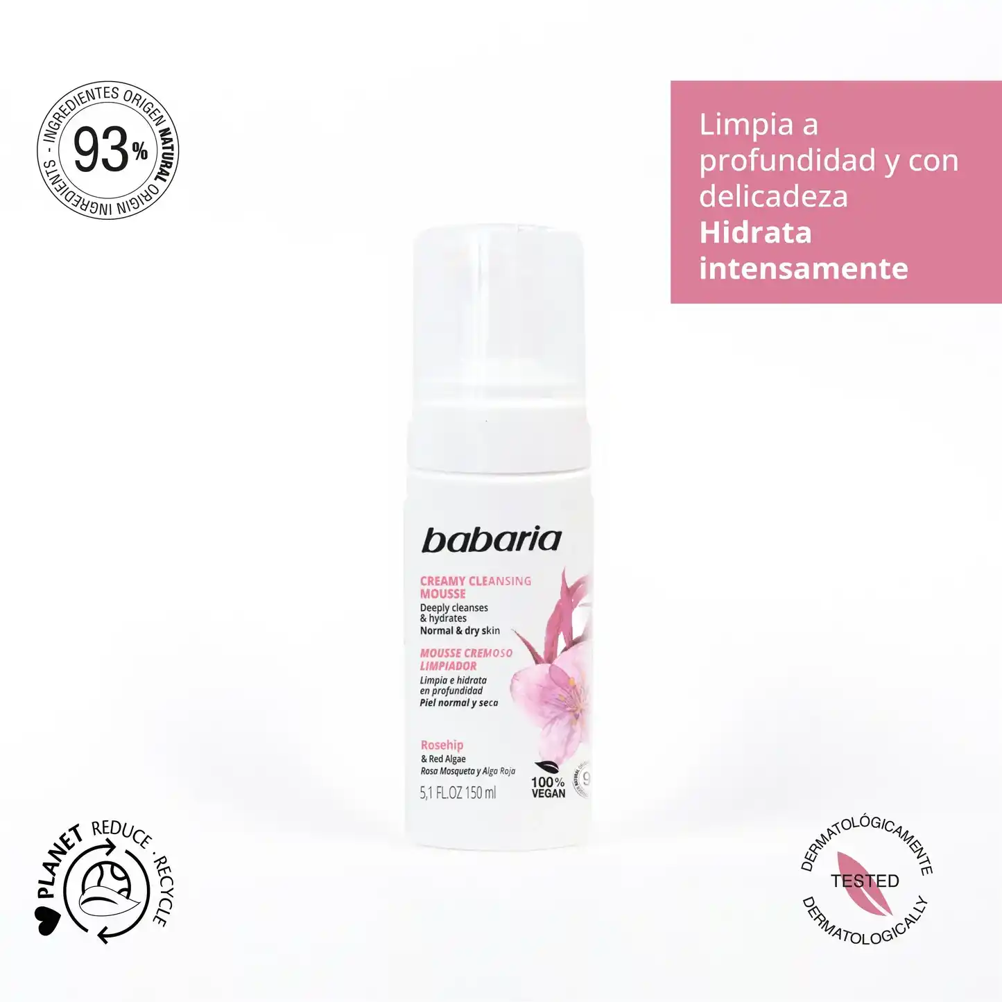 موس کرمی پاککننده باباریا Rosehip & Red Algae حجم 150میل یا همان Babaria Creamy Cleansing Mousse with Rosehip & Red Algae 150ml یک شوینده صورت تخصصی برای پوست نرمال تا خشک است. این موس با ترکیبات طبیعی از جمله روغن رز هیپ و جلبک قرمز، آلودگیها و باقیمانده آرایش را به ملایمت پاک کرده و در عین حال رطوبت پوست را حفظ میکند.