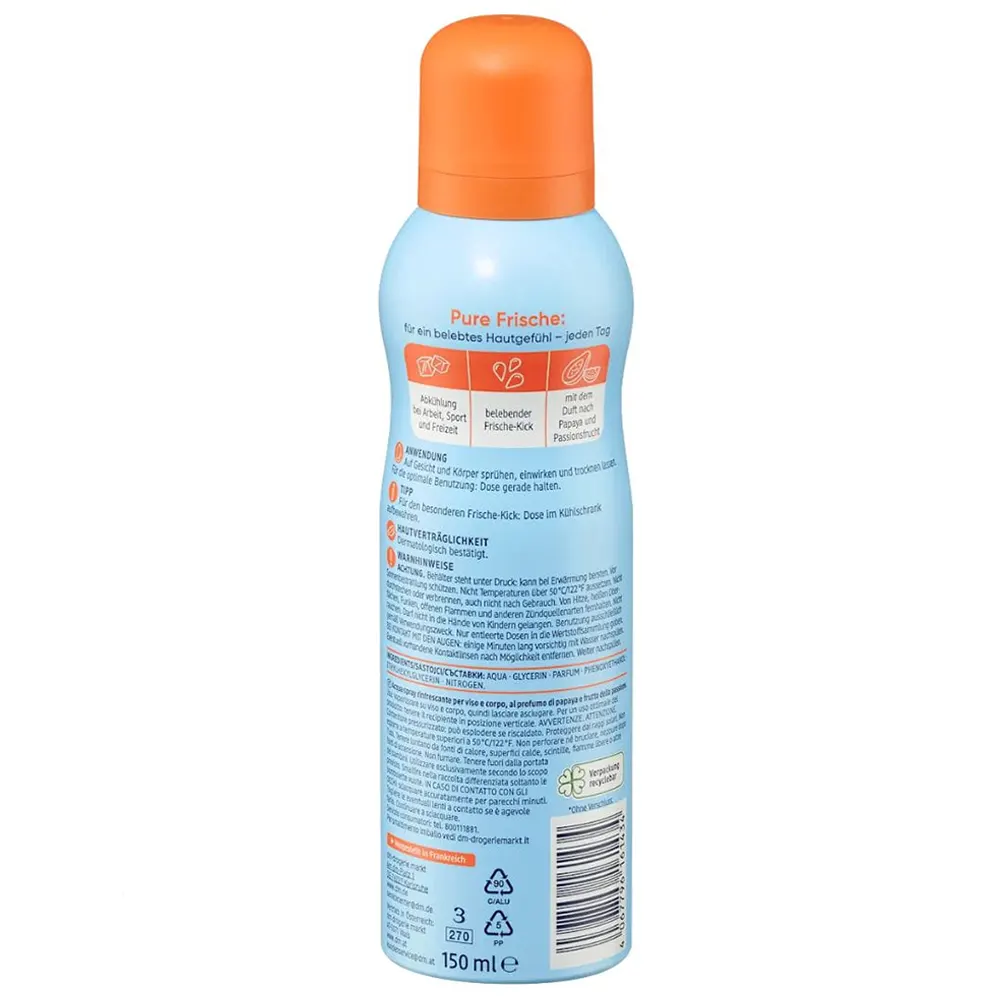 این اسپری آب صورت با فرمولاسیونی سبک و غیرچسبناک، بهسرعت جذب پوست میشود و بدون ایجاد سنگینی یا نیاز به شستشو، پوست را شاداب و باطراوت میکند. pH سازگار با پوست، استفاده از آن را برای انواع پوست—even پوستهای حساس—ایمن و لذتبخش کرده است. همچنین قوطی این محصول از ۵۰٪ مواد بازیافتی تولید شده که نشاندهنده توجه برند Balea به محیط زیست است.