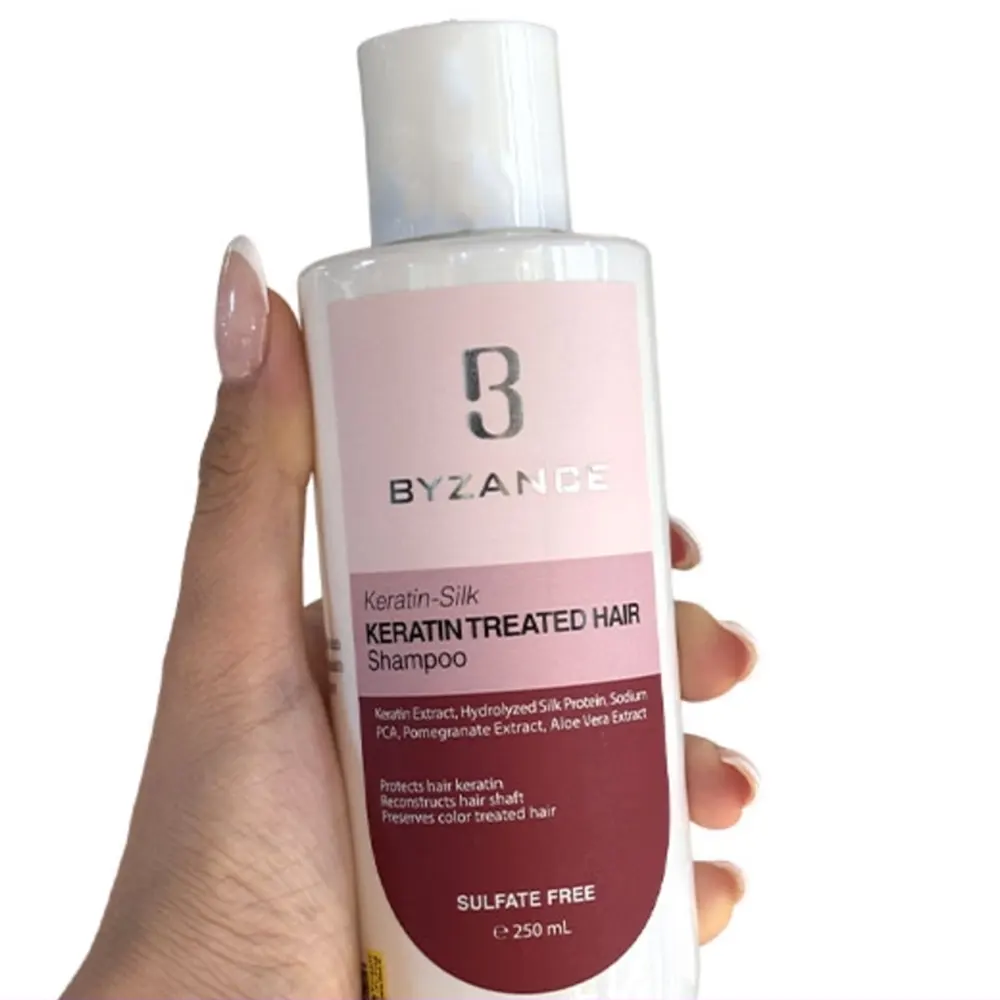 شامپو موهای کراتینه و رنگ شده بیزانس یک شوینده تخصصی و مراقبتی است که بهطور ویژه برای موهای کراتینهشده، رنگشده، دکلره و آسیبدیده طراحی شده است. این شامپو با فرمولاسیون ملایم و فاقد سولفات و پارابن، بدون تخریب ساختار کراتین، موها و پوست سر را بهصورت ایمن پاکسازی میکند و همزمان از ماندگاری مواد کراتینه و رنگ مو محافظت مینماید.