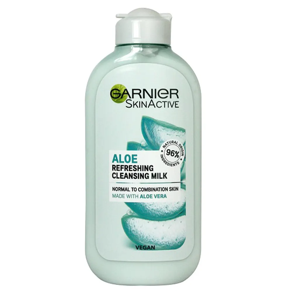 شیر پاک‌کن گارنیر Aloe vera یک پاک‌کننده ملایم و مؤثر برای حذف آرایش، آلودگی‌ها و چربی‌های اضافی پوست است که بدون آسیب به سد دفاعی پوست، آن را تمیز، نرم و شاداب می‌کند. این محصول با بافتی کرمی و لطیف، بدون ایجاد کف یا خشکی، تمامی مواد آرایشی حتی آرایش‌های روزانه را به‌آسانی در خود حل کرده و از سطح پوست پاک می‌نماید.