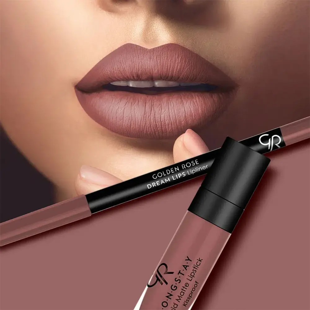 کیت لب گلدن رز مدل Rose Taupe یک ست حرفهای و کاربردی برای داشتن لبهایی خوشفرم، دقیق و با جلوهای کاملاً مات است. این کیت شامل رژ لب مایع مات از سری Longstay و مداد لب Dream Lipliner میباشد که از نظر رنگ کاملاً با یکدیگر هماهنگ هستند.