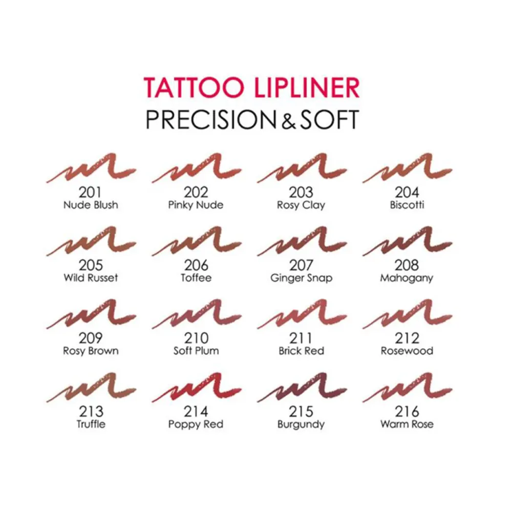 | رنگ | Lipliner 201 ,Lipliner 204 ,Lipliner 205 ,Lipliner 206 ,Lipliner 207 ,Lipliner 208 ,Lipliner 209 ,Lipliner 210 ,Lipliner 211 ,Lipliner 212 ,Lipliner 213 ,Lipliner 214 ,Lipliner 215 ,Lipliner 216 |