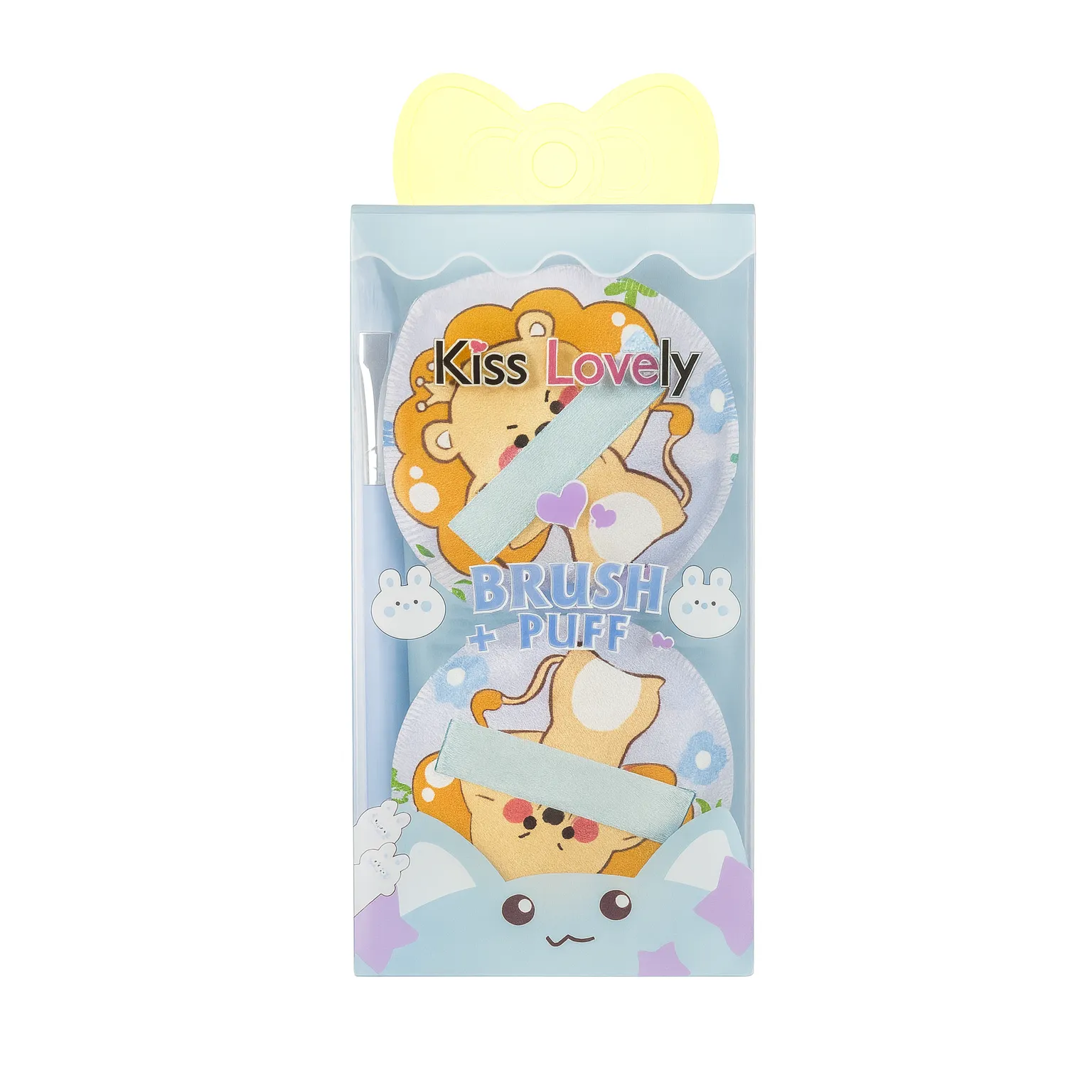 خرید پک دو عددی کوشن کرمپودر + براش سایه Kiss Lovely با قیمت مناسب از صورتی