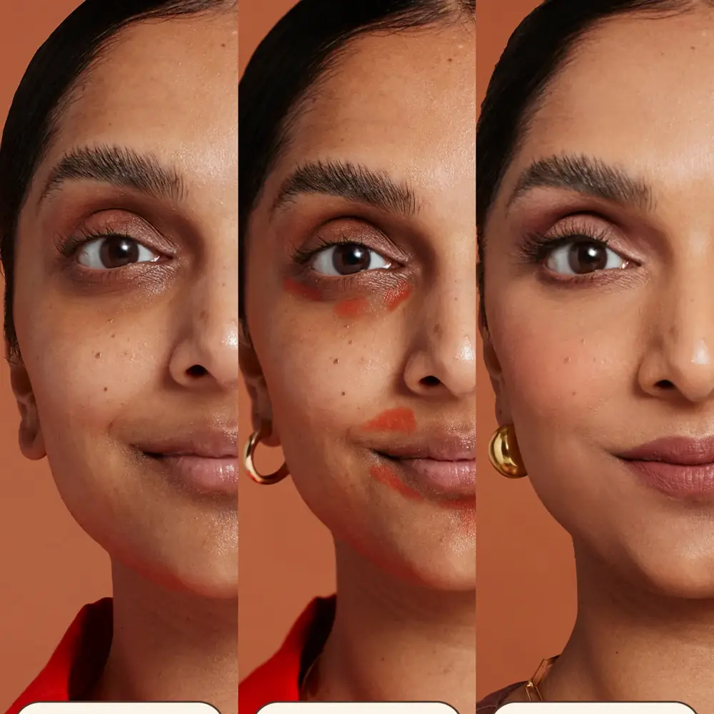 پس از آمادهسازی پوست و قبل از کرمپودر، مقدار کمی از کانسیلر نارنجی را روی تیرگیها و لکههای تیره بهویژه زیر چشم بزنید. با براش یا اسفنج محو کنید و سپس کرمپودر یا کانسیلر متناسب با رنگ پوست خود را روی آن استفاده کنید.