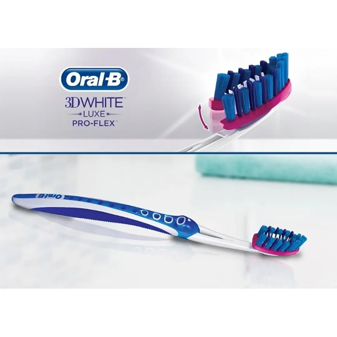 مسواک اورال بی مدل pro-flex luxe با برس ملایم با مینای دندان، مخصوص استفاده روزانه و با انعطاف پذیری بالا ارائه میشود. این برس با کارایی بالا خود، توانسته است در مدت دو هفته، 90 درصد از لکههای سطحی روی دندانها را بهبود بخشد.
