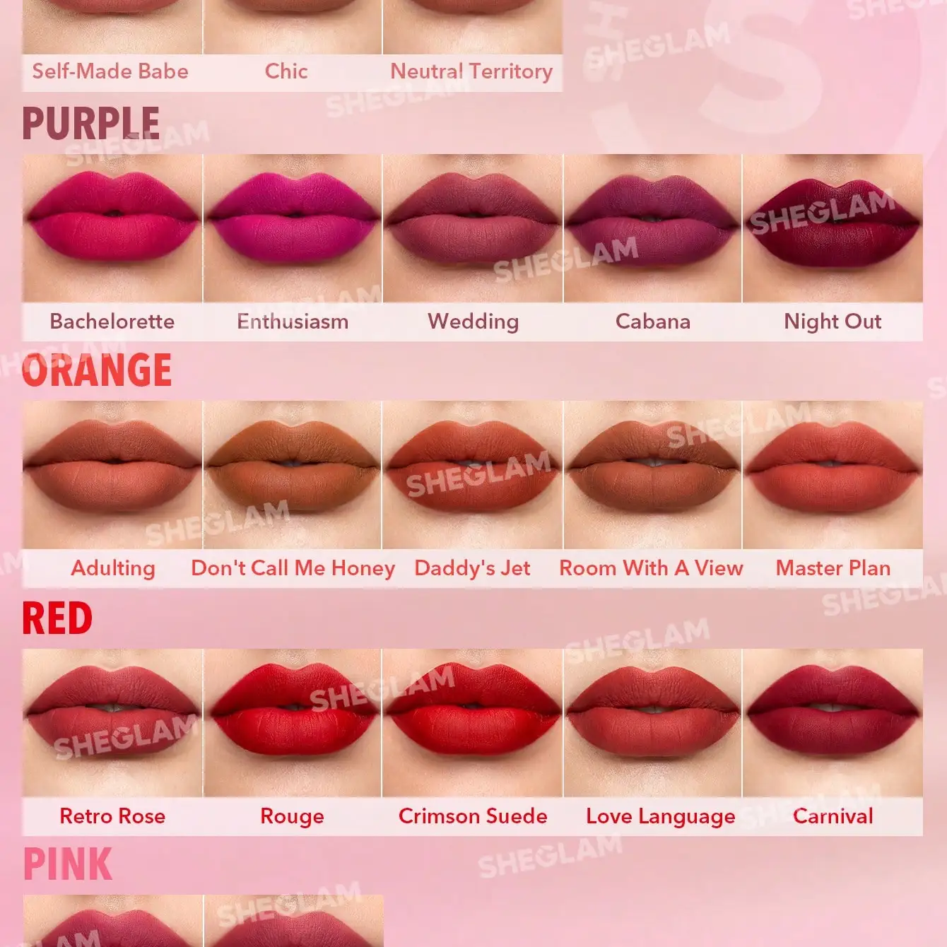 | رنگ | Cabana ,Carnival 530 ,Crimson Suede ,Love Language ,MASTER PLAN ,Neutral Territory ,Peony 206 ,Rendevous ,Retro Rose 201 ,Rouge 520 |