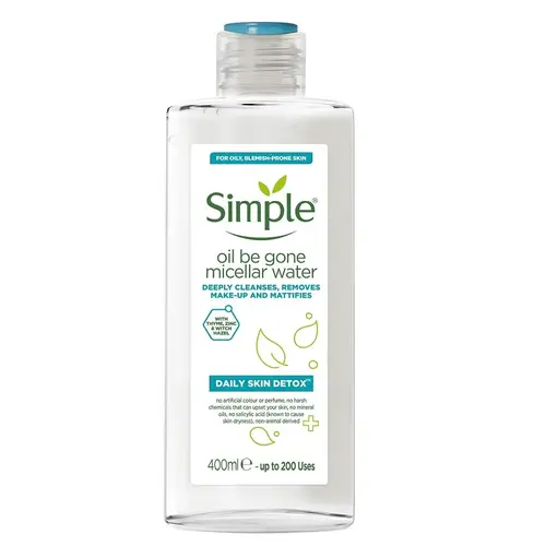 برای اینکه بتوانید ذرات ریز آرایشی و آلودگی هارا را به طور کامل از روی پوست خود پاکسازی کنید، میسلار واتر سیمپل مخصوص پوست های چرب گزینه ای عالی و مقرون به صرفه باتوجه به کیفیت بالای خود می باشد. چرا که این محصول علاوه بر قدرت پاک کنندگی بالا، غنی شده با عصاره هایی مانند آویشن و فندق و همچنین ویتامین E و روی بوده که می تواند به نرمی و لطافت پوست شما کمک کند.استفاده مداوم از میسلار واتر پوست چرب سیمپل می تواند منافذ باز پوست شما را کوچک تر کرده و مانع از آلودگی های پی در پی شود و تولید چربی پوست را کننترل کند و به همین خاطر نیز مانع از براق ماندن پوست شده و ظاهری مات به آن می بخشدهمچنین از دیگر ویژگی های فوق العاده این محصول خاصیت آبرسانی و ضد حساسیت آن است که می تواند طراوت و تازگی را برای پوست شما فراهم آورد. همچنین این محصول فاقد الکل و پارابن و مواد شیمیایی است و ضد حساسیت و ضد التهاب هم می باشد.