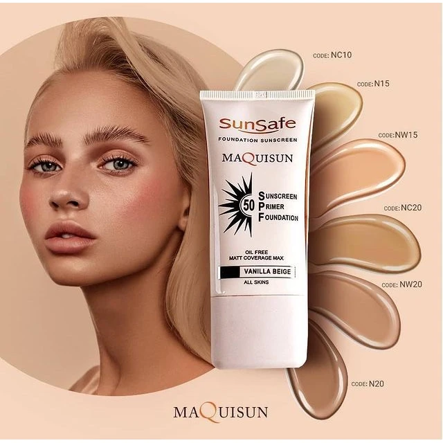 ضدآفتاب کرم پودری و پرایمری سان سیف MAQUISUN مدل NC10 Ivory Beige SPF50 یک محصول چندکاره حرفهای است که همزمان نقش ضدآفتاب، پرایمر و کرمپودر را ایفا میکند. این محصول با پوشش مات و یکنواخت، در کنار محافظت قوی در برابر اشعههای مضر UVA و UVB، پوست را صافتر، یکدستتر و آماده آرایش میکند. فرمول Oil Free آن، انتخابی ایدهآل برای افرادی است که به دنبال پوشش بالا بدون ایجاد حس سنگینی یا چربی روی پوست هستند.