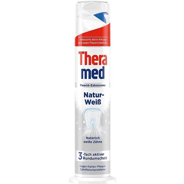 معرفی خمیردندان پمپی سفیدکننده ترامد Theramed Naturweiss حجم 100 میل