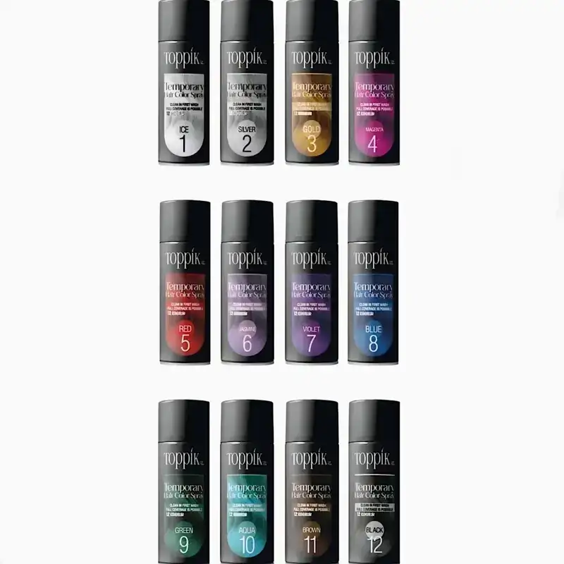 | رنگ | 04 Magenta Toppik ,Aqua Toppik 10 ,Black Toppik 12 ,Blue Toppik 08 ,Brown Toppik 11 ,Gold Toppik 03 ,Green Toppik 09 ,Jasmine Toppik 06 ,Red Toppik 05 ,Silver Toppik 02 ,Violet Toppik 07 |
