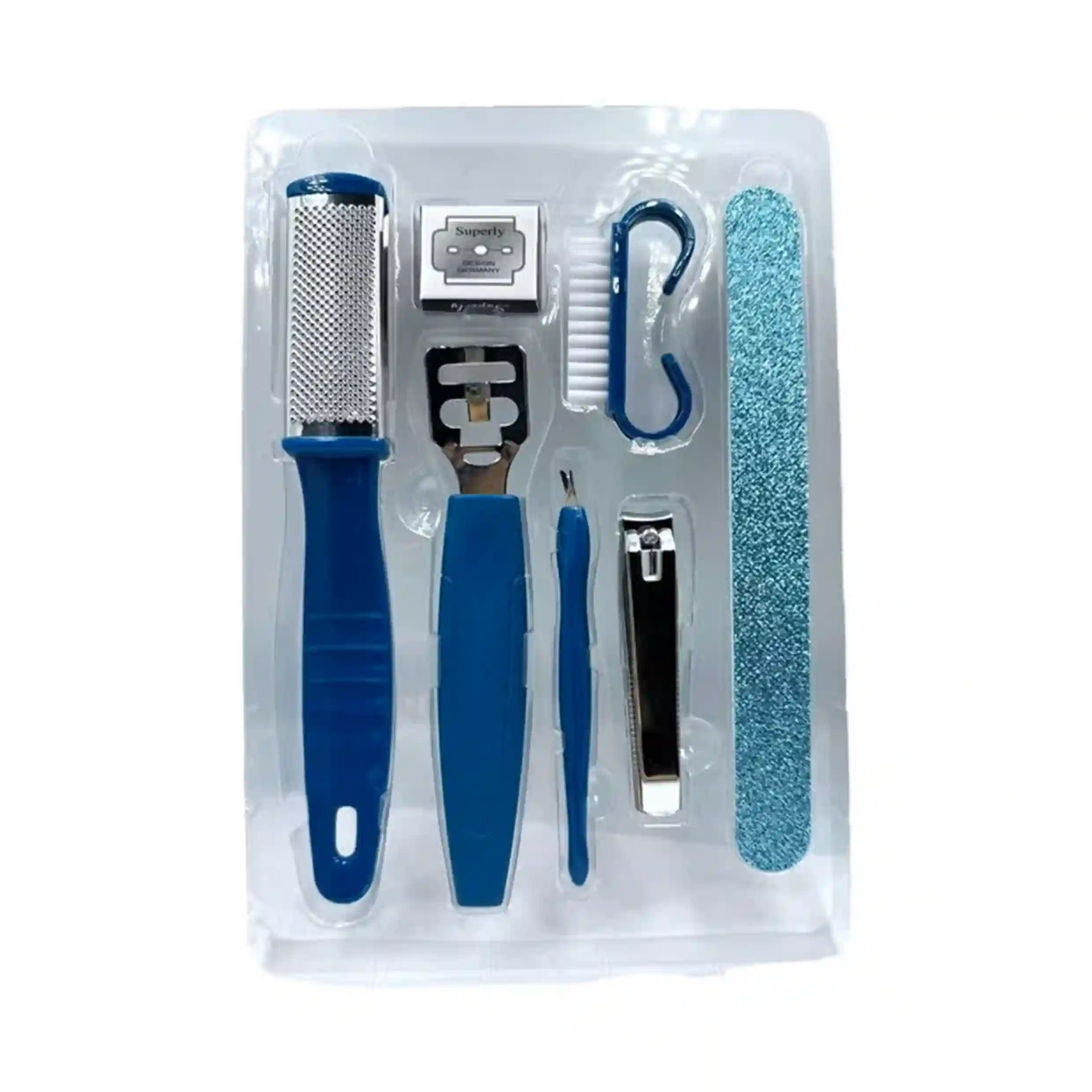 شامل سوهان ناخن، ناخن‌گیر، قیچی کوتیکول، ابزار تمیزکننده پوست، ابزار پدیکور و ابزارهای پاکسازی پوست پا.